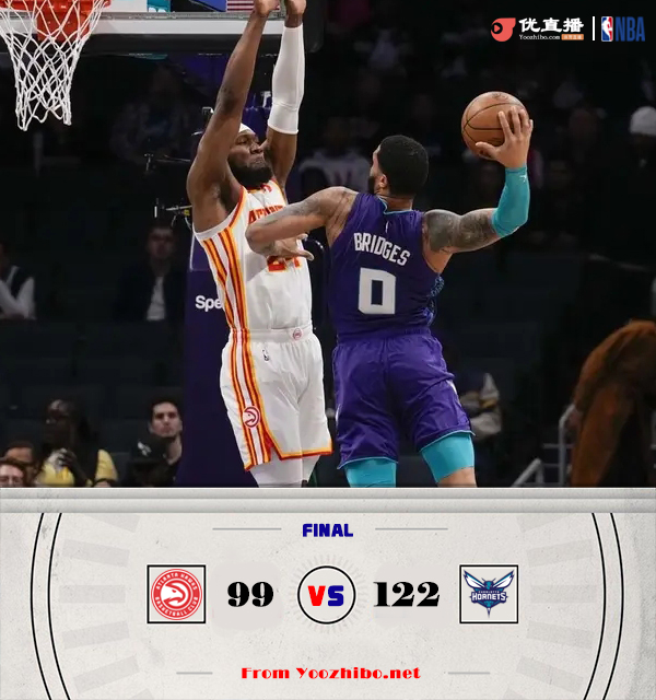 篮球直播吧2月15日讯 NBA常规赛,黄蜂主场迎战老鹰,黄蜂目前2连胜,12胜41负排在东部第13位,老鹰则是24胜30负排在东部第10位。比赛上来,穆雷手感不佳,黄蜂则是主力多点开花迅速建立主动权,随后老鹰连续内线追分,但亨特状态不错,联手博扬帮助老鹰最终首节领先2分,次节米勒找回手感,曼恩延续首节不错状态,黄蜂重新取得领先,但杰伦-约翰逊状态回归接连助老鹰追分,但米勒单节上双帮助黄蜂守住6分领先。下半场,黄蜂上来一波7-2拉开双位数领先,随后双方围绕10分左右领先展开拉锯战,曼恩有攻有传非常不错,米勒也是继续保持手感,三节结束黄蜂领先16分,末节老鹰全民皆兵继续追分,但黄蜂更是多点开花强势回应,替补也有人接连站出来将分差继续拉开,最终黄蜂122-99大胜老鹰,拿到3连胜。