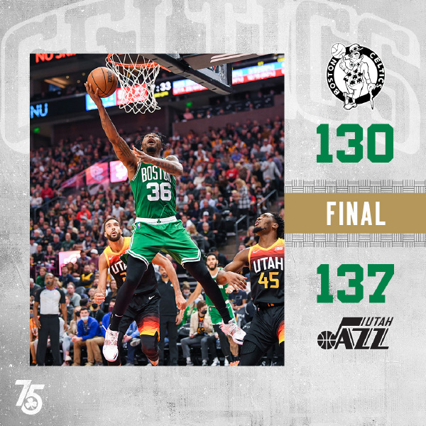 篮球直播吧 12月4日讯 NBA常规赛继续进行,在一场东西部球队的直接对话当中,爵士坐镇主场迎战凯尔特人,两队近期均迎来两连胜,此役杰伦-布朗因为腿筋伤势轮休,首节一上来康利连中3记三分率队轰出14-2开局,爵士手感滚烫三分13中9,随后霍福德连得7分及时止血,但末段爵士再度下起三分雨,首节结束后爵士已经领先13分,次节回来,爵士手感下滑,凯尔特人顺势轰出12-0攻击波缩小分差,末段霍福德连中三分,戈贝尔则在内线回应,半场战罢,爵士继续领先2分。易边再战,双方你来我往比分继续紧咬,塔图姆联手施罗德率队一度反超,但爵士连中三分及时回应,三节结束后爵士依然领先3分,末节决战,凯尔特人一波9-0反超比分,但康利联手米切尔回敬13-2攻击波,决胜时刻塔图姆联手施罗德追分,但康利和米切尔连中关键三分,凯尔特人追分未果,最终爵士137-130力克对手。