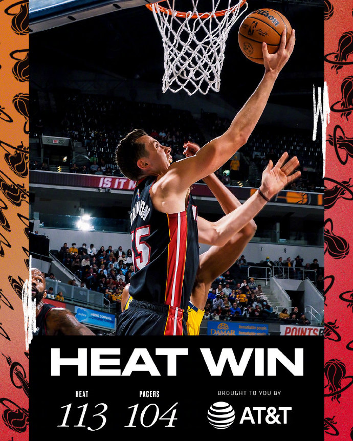 篮球直播吧 12月4日讯 NBA常规赛继续进行,步行者主场迎战热火,步行者最近状态又有回落,一波3连败目前排名东部第13位,而热火也是因为伤病经历2连败掉落至东部第5,本场热火巴特勒、阿德巴约等主力继续伤缺。开局热火外线手感火热,洛瑞和邓罗联手下起三分雨帮助热火建立领先,步行者则是依靠替补的不错发挥追分,但热火首节还是领先7分,次节双方上来展开拉锯战,热火牢牢保持着比赛主动权,步行者连续冲击内线追分,但洛瑞又站出来在进攻端帮助热火守住7分优势。第三节,特纳继续自己不错状态,能里能外帮助步行者追分,但热火戴德蒙和希罗总是能强势回应answer ball,热火总能回应步行者追分球,三节结束热火领先到11分,末节尤特赛文内线接连吃饼,洛瑞外线继续火热手感,热火上来将分差拉开至近20分,勒韦尔站出来连续杀内线帮助步行者追分,但无奈分差太大热火保持住双位数领先优势,最终热火力克步行者,止住连败的同时送对手4连败。