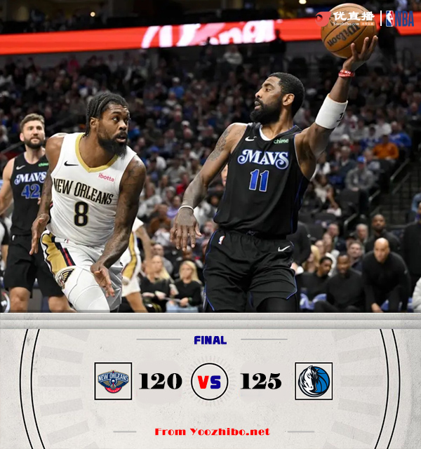 篮球直播吧1月16日讯 NBA常规赛,独行侠再次主场迎战鹈鹕,独行侠目前23胜17负排在西部第7位,鹈鹕则是24胜16负排在西部第5位,两队前天在独行侠主场有过交手,鹈鹕取得胜利;本场比赛东契奇不打。比赛上来,双方进入状态都较慢,鹈鹕更是陷入5分钟的得分荒,欧文有突有投带领独行侠打出19-7梦幻开局,鹈鹕运动战进球屈指可数只好靠罚球追分,首节独行侠领先16分,次节麦科勒姆联手锡安带领球队一波14-2攻击波止血,随后双方展开拉锯战,小哈达威撑起球队进攻,英格拉姆欧洲步上篮帮助鹈鹕半场追平比分。下半场,双方展开胶着拉锯战,小哈达威和欧文继续苦苦支撑进攻,而锡安联手麦科勒姆带来替补席建立起主动权,末节双方继续拉锯战,双方命中率都有下降,但鹈鹕还是掌握着两球以上领先,但随后小哈达威又接连三分助队一波11-0直接反超比分,随后独行侠牢牢守住领先,锡安两罚一中后英格拉姆三分不中,最终独行侠125-120险胜鹈鹕。