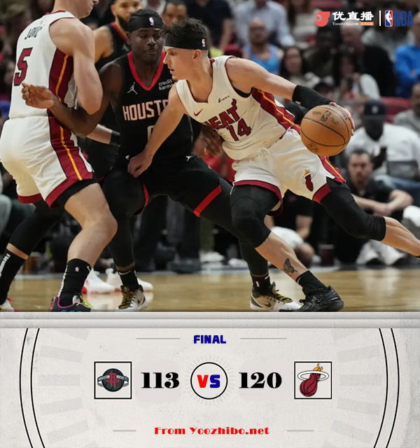 篮球直播吧1月9日讯 NBA常规赛热火主场迎战火箭,热火目前排在东部第八,上场比赛他们输给了太阳,火箭则是上场比赛力克雄鹿,本场比赛巴特勒、马丁、狄龙、伊森均继续缺阵。刚开场两队你来我往打得势均力敌,首节后半段热火外线连续命中三分建立领先,次节阿德巴约受犯规困扰早早下场,火箭趁机打开进攻局面在半场结束时追平比分。下半场回来阿德巴约帮助热火再次建立领先,老将乐福也表现抢眼,最后一节虽然火箭努力追分但热火始终保持住领先优势,最终热火击败火箭。