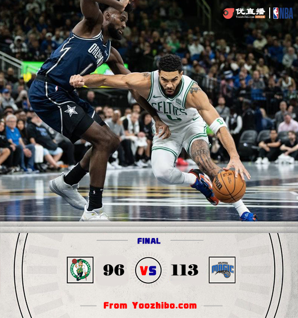 篮球直播吧11月24日讯 NBA常规赛东部季中锦标赛C组,魔术主场迎战凯尔特人,魔术最近势头正盛,目前10胜5负跃居东部次席;凯尔特人则是12胜3负高居东部榜首,本场比赛霍勒迪因伤缺阵。比赛上来,双探花上来就发力包办绿军前9分,而魔术则是全民皆兵能给出回应,杰伦-布朗状态火热单节得分上双,魔术连续失误被绿军打成反击,绿军一波小高潮首节领先到双位数,次节双方展开拉锯战,大瓦格纳成为替补奇兵,单节砍下12分,但科内特接连内线吃饼能回应,塔图姆手感不佳能依靠造杀伤添分,半场绿军领先8分。下半场,凯尔特人进攻端突然断电,萨格斯、小瓦格纳和班凯罗外线接连扔进4记三分,魔术打出17-0超级进攻波直接反超比分,怀特站出来罚球加三分终于止颓,波津不会回归,三节结束魔术还是反超3分,末节大瓦格纳带领魔术上来8-0直接领先到双位数,而双探花进攻端乏力,凯尔特人始终不能缩小分差,最终魔术113-96逆转凯尔特人,喜提6连胜。