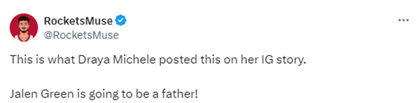 来源:篮球直播吧03-09 15:13篮球直播吧03月09日讯 ,火箭22岁新星杰伦-格林就要当爸爸的消息引热议,比自己大17岁的女友扎娅-米歇尔正式宣布怀孕,晒孕肚照并且透露自己怀上女孩。