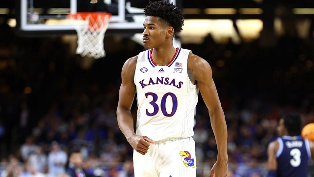 奥柴-阿巴基(Ochai Agbaji)出生于2000年4月20日,身高1.97米,体重98公斤,臂展2.09米,司职后卫,来自堪萨斯大学,今年大四,选秀模版为克劳德/多里安-芬尼-史密斯/臂展长一些的贝恩。