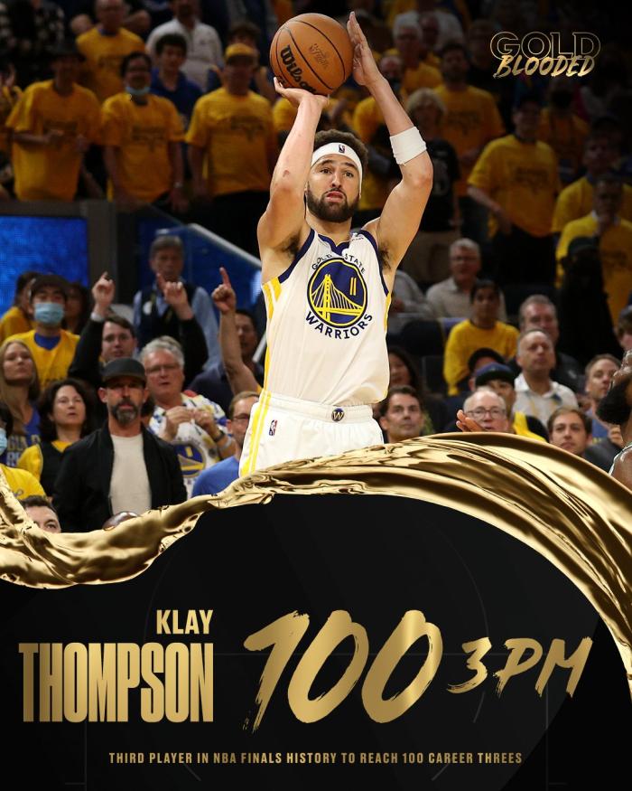 汤普森总决赛三分命中数正式达成100记大关,成为库里和詹姆斯之后第三位总决赛至少命中100记三分的球员;汤普森和库里季后赛三分命中总数突破1000记大关,水花兄弟创历史第一且唯一纪录,比黄蜂、森林狼、鹈鹕、国王、奇才、灰熊、尼克斯、76人和篮网9支球队季后赛三分命中数还多,这纪录太疯狂。