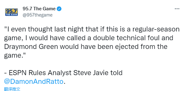 来源:篮球直播吧06-07 11:13篮球直播吧06月07日讯 ,NBA退役名哨、ABC解说嘉宾史蒂夫-贾维在节目中再次谈到总决赛G2格林和布朗之间的冲突事件,直言:我昨晚甚至觉得如果这是一场常规赛,我会吹双方技术犯规,而追梦将(累积2个技犯)被驱逐出场。