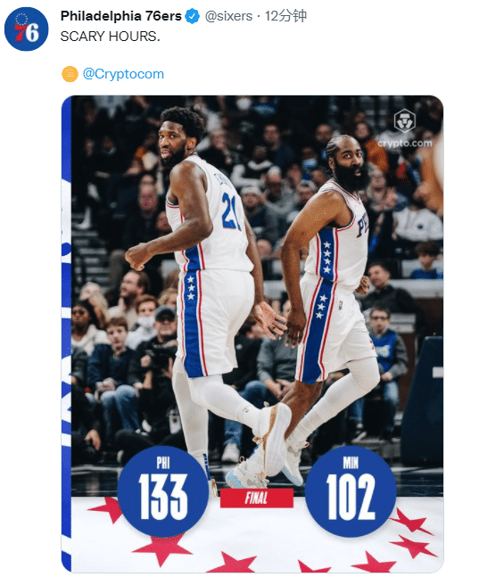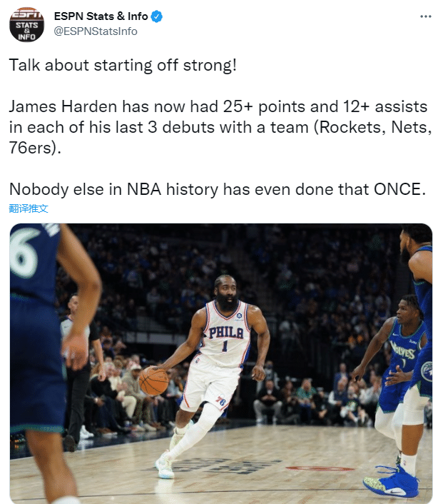 哈登三队首秀25+12创纪录,历史第一!76人官方高呼恐怖时刻