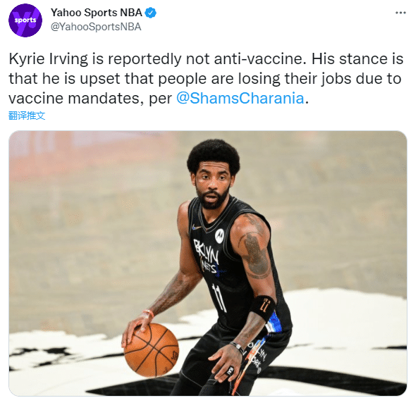 来源:篮球直播吧10-13 11:42篮球直播吧10月13日讯 ,篮网队已经宣布禁赛欧文随队参加训练和比赛,直到他履行纽约的防疫规定,之后名记shams继续报道欧文的情况,凯里-欧文并不反对疫苗,他的立场是,他对人们因没有接种疫苗而失业感到不安,这也是他拒绝接种的重要原因。