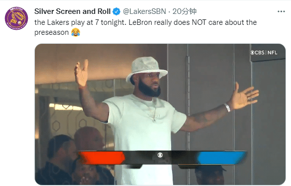 此前湖人不敌太阳,詹姆斯身披6号战袍迎来季前赛首秀,出战18分钟,12投4中、三分3中0拿到9分3篮板2助攻1抢断,赛后詹姆斯表示他在乎季前赛的输赢,根本学不到任何东西;湖人和太阳赛前,詹姆斯到NFL现场观看比赛,美媒点评:詹姆斯真的不在乎季前赛。