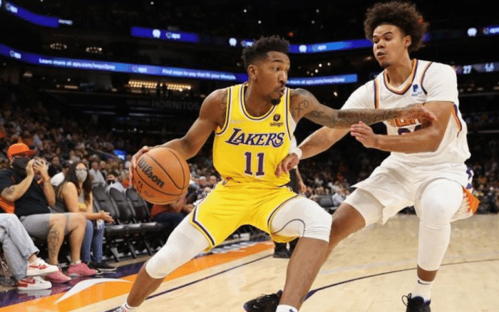 湖人今天对阵太阳的首发五虎是威少、浓眉、艾灵顿、小乔丹和贝兹莫尔,湖人记者还透露詹姆斯接下来的计划,詹姆斯今天轮休不打,但詹姆斯会打最后两场季前赛,周三对阵勇士和周五对阵国王。