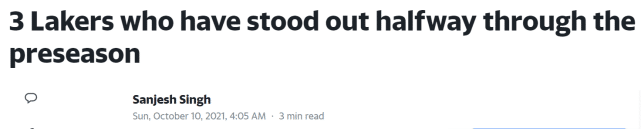 来源:篮球直播吧10-10 11:26篮球直播吧10月10日讯 本赛季,湖人一共安排了6场季前赛,如今他们已经打完其中3场,全部告负。北京时间10月10日,NBA记者Sanjesh Singh表示,湖人虽然遭遇三连败,但队内仍有三名98后球员的表现出色,给人们留下了深刻的印象。