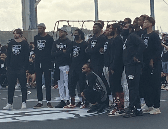 篮网全队户外合影曝光!哈登臃肿又胖了,杜兰特拥抱欧文喜笑颜开