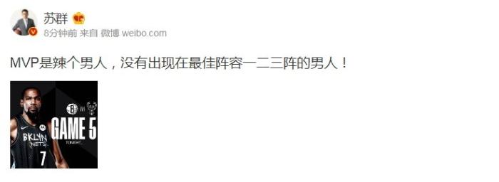 苏群嘲讽最佳阵容“MVP是辣个男人,没有出现在最佳阵容一二三阵的男人!”