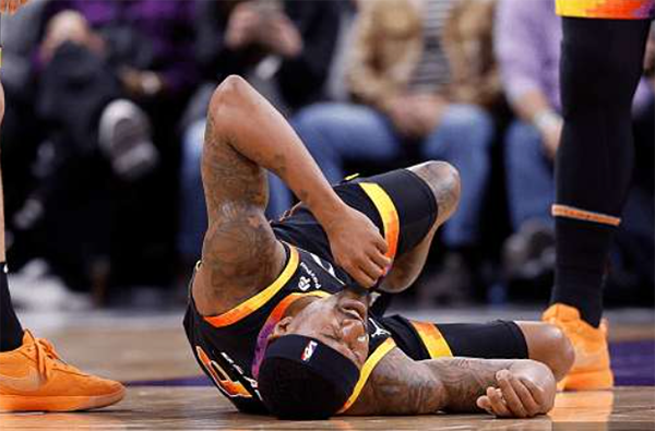 此前在太阳和尼克斯比赛中,第一节7分28秒,比尔投篮落地时踩到迪文琴佐的脚导致自己的右脚踝呈90扭伤,比尔痛苦倒地十分难受,迪文琴佐涉嫌垫脚被吹罚一级恶意犯规;比尔一瘸一拐坚持罚球后返回更衣室,并且因伤提前退赛。
