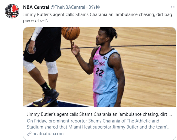来源:篮球直播吧05-22 16:42篮球直播吧讯北京时间5月22日,名记shams爆出猛料,热火当家球星巴特勒和球队教练组在私底下发生过非常激烈的争吵,难道热火内讧吗?季后赛即将来临,名记如此报道太狠,不过巴特勒经纪人已经强势回应名记,怒骂:闭上你的臭嘴,你就是垃圾。