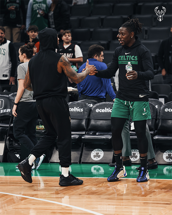 来源:篮球直播吧11-23 09:45篮球直播吧11月23日,在雄鹿和凯尔特人强强对决赛前,雄鹿旧将霍勒迪重返老东家更衣室,与字母哥、米德尔顿等老队友击掌拥抱,在球场上,霍勒迪还和利拉德开心热聊。