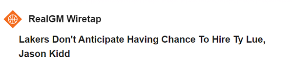 来源:篮球直播吧05-06 12:39篮球直播吧讯 在首轮被掘金4-1淘汰后,湖人解雇主教练哈姆并且清洗了整个教练组,可湖人的换帅之路接连受阻;据报道,预计基德将和独行侠续约,湖人预计不再追逐基德和卢帅,美媒解析湖人需要聘请一位能赢得詹眉尊重的新帅。