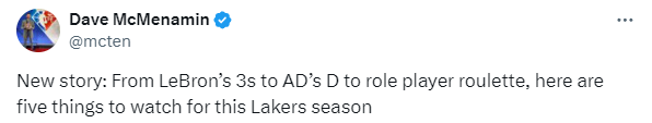 对于湖人的伤病情况,Dave McMenamin表示,虽然伍德进行了膝盖手术,范德比尔特的脚还没恢复到100%,但文森特、雷迪什、席菲诺都100%准备好了,这给了主教练雷迪克更多选择,他们将竞争上场时间。