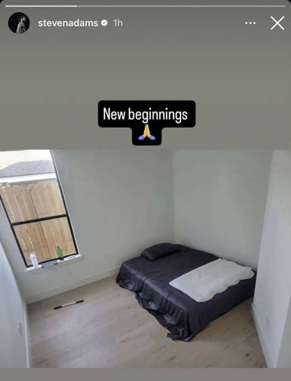 亚当斯更新了Ins,在社媒上晒出了一张自己的新房间并配文写道:新的开始。
