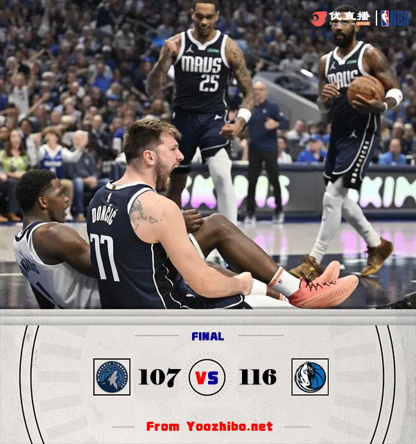 篮球直播吧5月27日讯 独行侠今日回到主场迎来和森林狼西部决赛的G3之战,独行侠此前两个客场比赛全部拿下,目前总比分上2-0取得领先。首节之争独行侠回到主场迅速进入状态并一路保持着领先,森林狼虽然能够一直咬住比分但始终无法扭转局势;次节开局独行侠在欧文的带领下一度拿到两位数领先,莱夫利节中出现脑震荡离场让球队内线少了一个屏障;不过末段面对森林狼的苦苦追赶,独行侠在东契奇的三分进球中带着8分领先进入下半场。休息归来表现不错的康利开局不久就领到第三犯被迫下场,开局4分钟球队就犯满导致局面非常被动;不过爱德华兹及时站出来包括一记炸裂暴扣在内连拿6分,森林狼用一波13-3的攻势一举抹平比分;这之后双方一路交替拿分多次打平悬念一路保持到最后,不过最后时刻还是独行侠更胜一筹,华盛顿命中关键反超三分,末段东契奇和欧文相继命中高难度进球将优势扩大至6分奠定胜局。最终,独行侠主场力克森林狼夺得赛点,总比分上3-0取得领先。