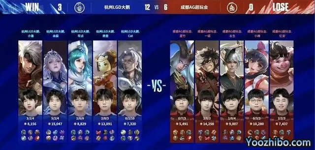 篮球直播吧讯 北京时间03月24日,在KPL第二场比赛中,成都AG超玩会以0-3的比分不敌杭州LGD大鹅,本赛季苦吞五连败,虽然KPL联赛官方还没有出公告,但成都AG已经确定B/A卡位赛了,还有所谓的理论出现机会可以忽略不计。