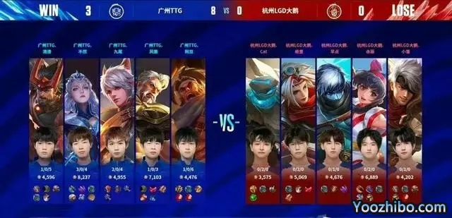 篮球直播吧讯 北京时间03月12日,在KPL第三场比赛中,广州TTG以3-0的比分碾压杭州LGD大鹅,拿下第二轮常规赛的首胜。