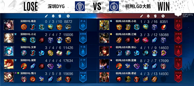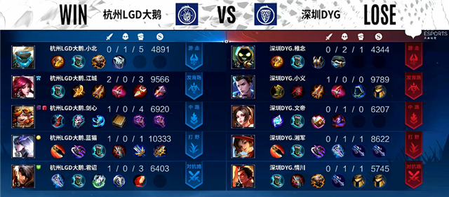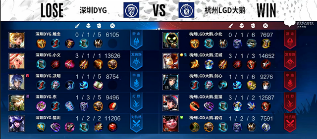 蓝色方:杭州LGD大鹅