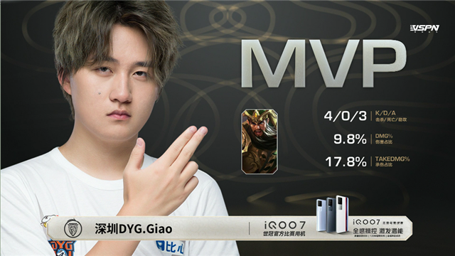 2分13秒,RW侠拿下暴君,随后深圳DYG沈梦溪击杀云缨拿下一血。5分01秒,RW侠吕布击杀庄周。5分28秒,RW侠鲁班七号击杀虞姬。5分58秒,上路团,深圳DYG打出0换3。9分35秒,双方团,深圳DYG打出1换3。10分36秒,深圳DYG拿下暗影主宰。11分21秒,深圳DYG破掉RW侠上二塔。12分27秒,深圳DYG拿下暗影暴君。13分40秒,上路团,深圳DYG打出0换5团灭对手并破掉RW侠上高地。14分06秒,兵线到达后,深圳DYG摧毁RW侠水晶拿到赛点。