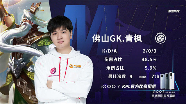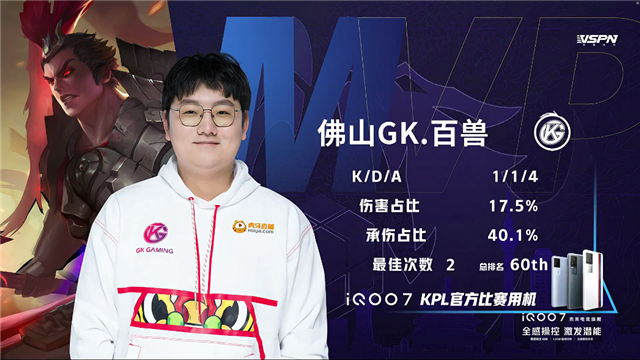 双方平稳开局,2分23秒佛山GK拿下第一条暴君。3分40秒佛山GK姜子牙击杀伽罗拿下一血,4分22秒佛山GK裴擒虎击杀吕布。6月15佛山GK拆掉深圳DYG下路二塔,6分43秒佛山GK拆掉深圳DYG中路一塔。8分40秒深圳DYG中上路二塔被破,9分30秒深圳DYG中路高地被破。10分23秒佛山GK拿下暗影暴君,11分钟佛山GK拆掉深圳DYG下路高地,打出0换3一波摧毁其水晶拿下本局胜利。