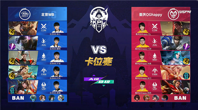 篮球直播吧讯 5月12日2021KPL春季赛常规赛第八周第一日第一场A/B卡位赛,由A组北京WB对阵B组重庆QGhappy,以下是本场比赛快讯。