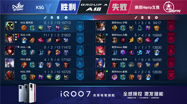 篮球直播吧讯 5月9日2021KPL春季赛常规赛第七周第六日第一场比赛,由A组的南京Hero久竞对阵KSG,以下是本场比赛快讯。