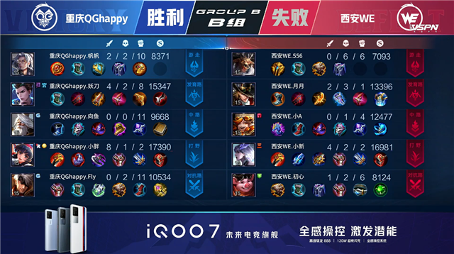 篮球直播吧讯 4月30日2021KPL春季赛常规赛第六周第三日第一场比赛,由B组的重庆QGhappy对阵西安WE,以下是本场比赛快讯。