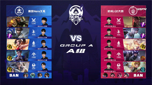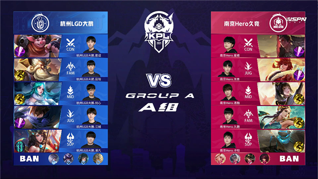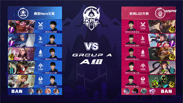 篮球直播吧讯 4月25日2021KPL春季赛常规赛第五周第五日第一场比赛,由A组的南京Hero久竞对阵杭州LGD大鹅,以下是本场比赛快讯。