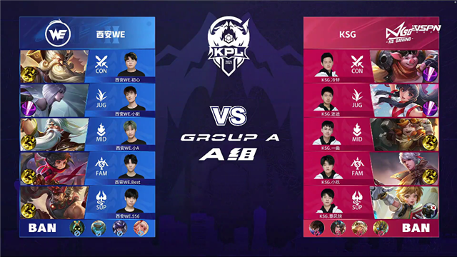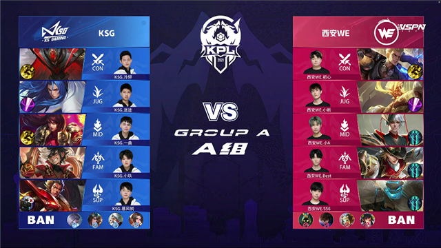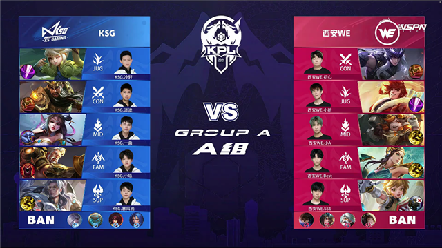 篮球直播吧讯 4月14日2021KPL春季赛常规赛第四周第一日第一场比赛,由A组的西安WE对阵KSG,以下是本场比赛快讯。
