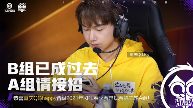 重庆QGhappy晋级2021年KPL春季赛常规赛第三轮A组!“从B组开始打才有意思”,新一轮的征程,我们一起期待重庆QG大杀四方!
