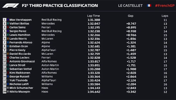 - 【录像】【腾讯】2021F1法国大奖赛三练 圈速2021-06-19 20:24:39