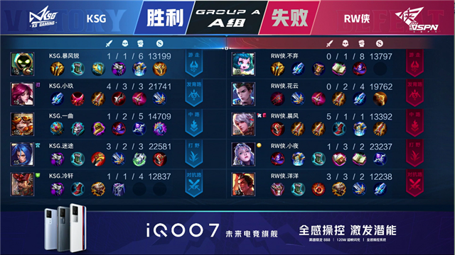 篮球直播吧讯 5月7日2021KPL春季赛常规赛第七周第四日第二场比赛,由A组的KSG对阵RW侠,以下是本场比赛快讯。