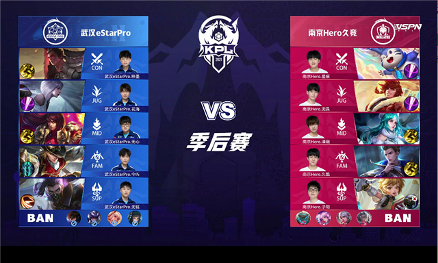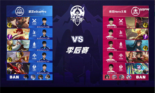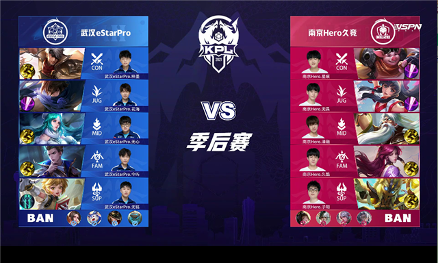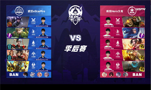 篮球直播吧讯 6月5日2021KPL春季赛季后赛胜者组第一轮,由武汉eStarPro对阵南京Hero久竞,以下是本场比赛快讯。