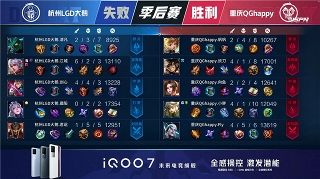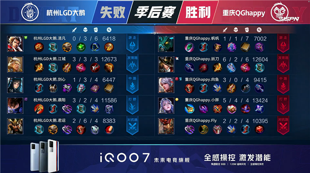篮球直播吧讯 6月3日2021KPL春季赛季后赛败者组第一轮第一场,由重庆QGhappy对阵杭州LGD大鹅,以下是本场比赛快讯。