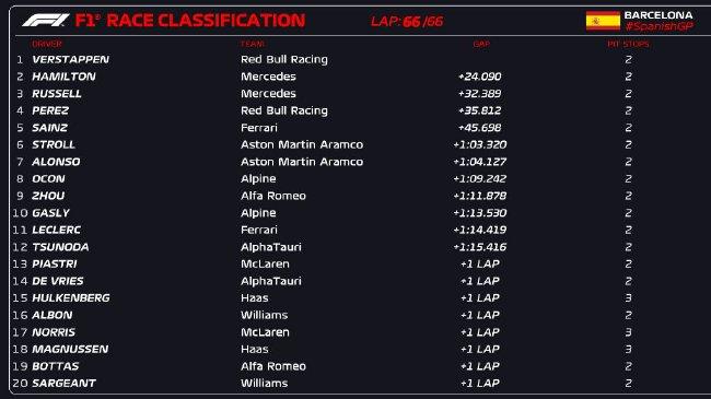 篮球直播吧讯 2023年F1西班牙大奖赛正式比赛在巴塞罗那赛道结束。杆位起步的红牛车手维斯塔潘一路领跑轻松夺冠,收获赛季第五冠,生涯分站冠军数来到40;梅赛德斯车队汉密尔顿收获亚军,拉塞尔从第12位发车斩获季军,梅赛德斯双领奖台,升级初见成效!