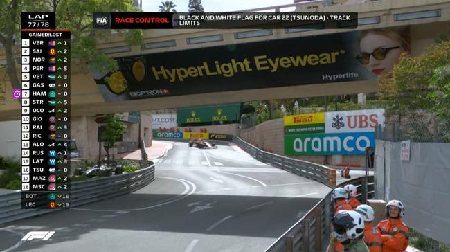 经过一番插曲后,2021F1摩纳哥大奖赛正赛顺利发车,第1圈过后,前十位发车的车手排名没有发生变化。第8圈,排在首位的维斯塔潘领先第二位的博塔斯1.289秒,塞恩斯则紧追博塔斯。第9圈,排在第六位的汉密尔顿距离维斯塔潘超过10秒。第19圈,从第1圈发车后,所有车手的顺序都没发生变化,而诺里斯由于两次违反赛道限制,被出示黑白旗。