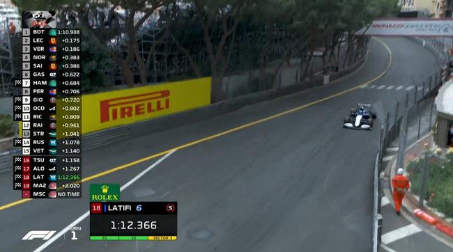 2021F1摩纳哥大奖赛排位赛成绩: