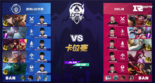 篮球直播吧讯 5月11日2021KPL春季赛常规赛第八周第一日第二场A/B卡位赛,由A组杭州LGD大鹅对阵B组RNG.M,以下是本场比赛快讯。