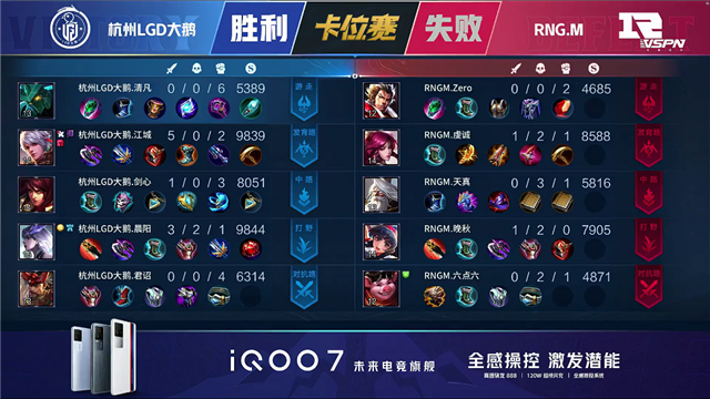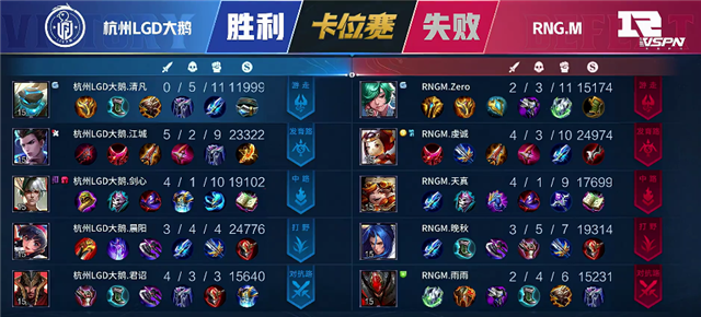 RNG.M选用:鲁班大师、周瑜、狄仁杰、赵云、老夫子