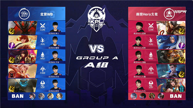 篮球直播吧讯 4月23日2021KPL春季赛常规赛第五周第三日第一场比赛,由A组的南京Hero久竞对阵北京WB,以下是本场比赛快讯。
