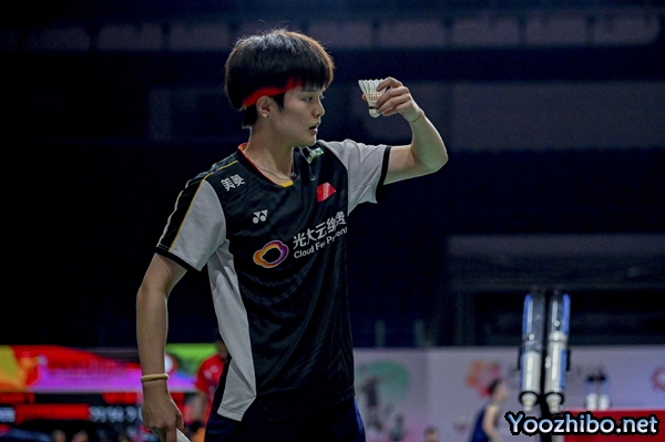 北京时间05月25日,2023年马来西亚羽毛球大师赛女子单打首轮比赛中,中国选手王祉怡以2比0战胜印度选手马尔维卡·班索德,晋级下一轮。,比分为(21:11、21:13)王祉怡在前。