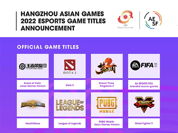 这八个项目分别为《王者荣耀》《Dota 2》《梦三国 2》《FIFA》《炉石传说》《英雄联盟》《和平精英》《街霸V》