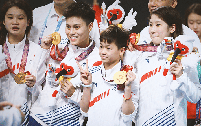 来源:篮球直播吧09-07 09:56篮球直播吧9月07日讯全运会第一个引发全民关注的项目是跳水女子团体,全红婵所在的广东队成功夺冠,河北队和东道主陕西队斩获银牌和铜牌。这其中大家关注的焦点是新科奥运会金牌得主全红婵,她的表现也很出色,在自己的10米台项目中,力压张家齐、陈芋汐等人拿下第一名,为广州队贡献413.90分。6日晚上所有比赛结束,全红婵与队友们站上最高领奖台,一起庆祝拿下全运会跳水首金。