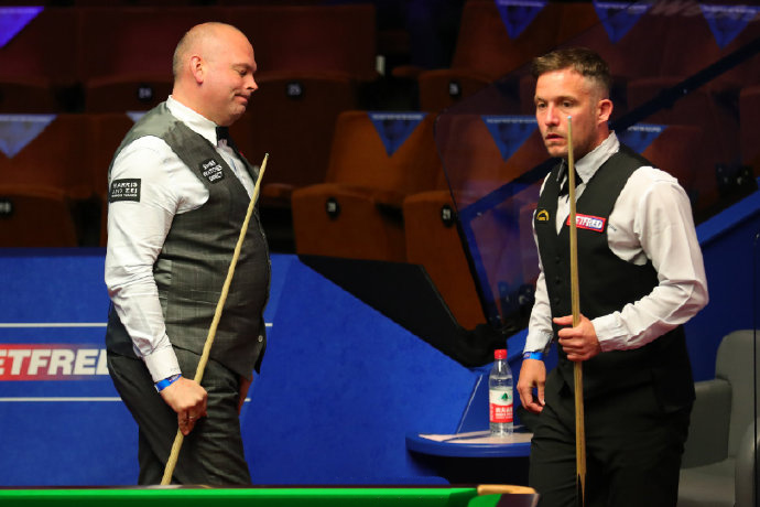 篮球直播吧讯 北京时间4月26日晚,2021斯诺克世锦赛正赛第二轮结束了倒数第4场比赛。2015年世锦赛冠军斯图尔特-宾汉姆在第三阶段开始后,轰出2杆破百和1杆60+,连胜3局,大比分13-6战胜杰米-琼斯,职业生涯第3次晋级世锦赛8强。他将在1/4决赛中对阵此前淘汰了卫冕冠军罗尼-奥沙利文的安东尼-麦克吉尔。