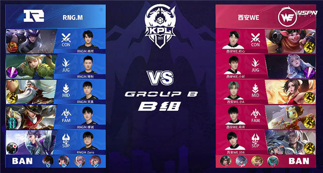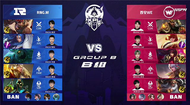 篮球直播吧讯 4月24日2021KPL春季赛常规赛第五周第四日第三场比赛,由B组的西安WE对阵RNG.M,以下是本场比赛快讯。
